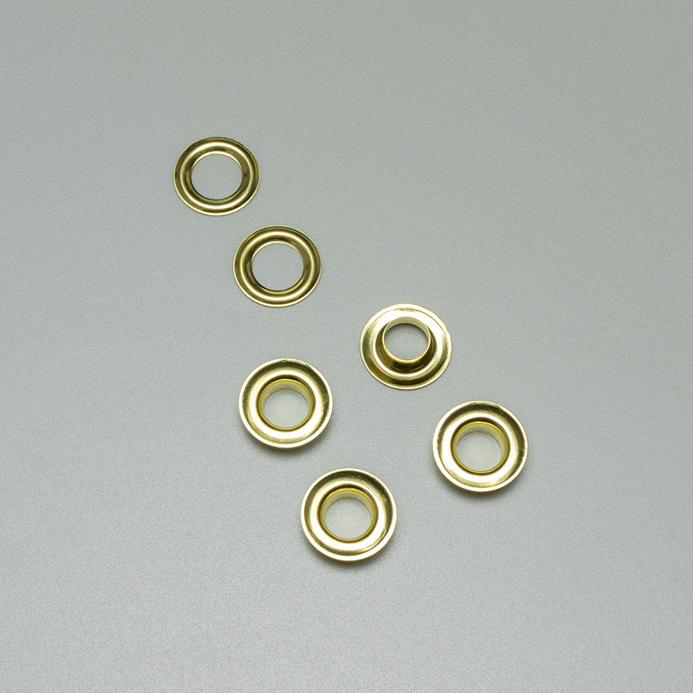 Gromets in gold color Paired with silver backing washers, nickel free.