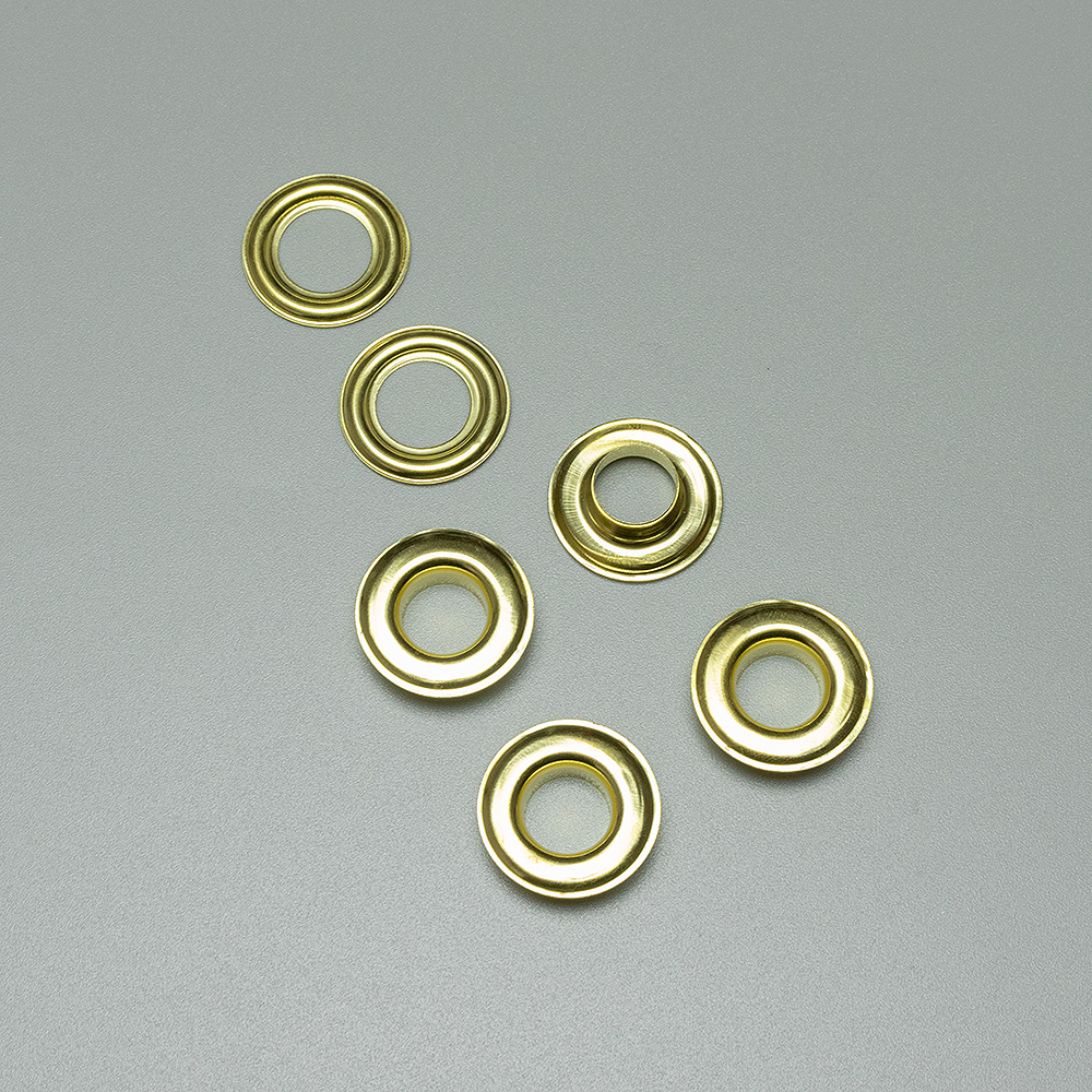 Gromets in gold color Paired with silver backing washers, nickel free.